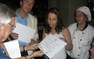 La Academia contribuyó con la Escuela de Hotelería y Gastronomía del Plata, del Uruguay, para convocar a los prestigiosos chefs Juliana López May y Martín Molteni, quienes viajaron desinteresadamente a Montevideo para ofrecer su colaboración para dictar clases abiertas de cocina, al fin de recaudar fondos destinados a becas para estudiantes de bajos recursos que aspiran a ser cocineros. Para atender las necesidades de los jóvenes del interior que no pueden acceder a la cuota de sus estudios o a un lugar donde vivir, la Escuela del Plata cuenta con una residencia para veinticuatro estudiantes y un departamento de becas para cubrir gastos de educación y vivienda. El 90% de las alumnas reciben becas de estudio y alojamiento.